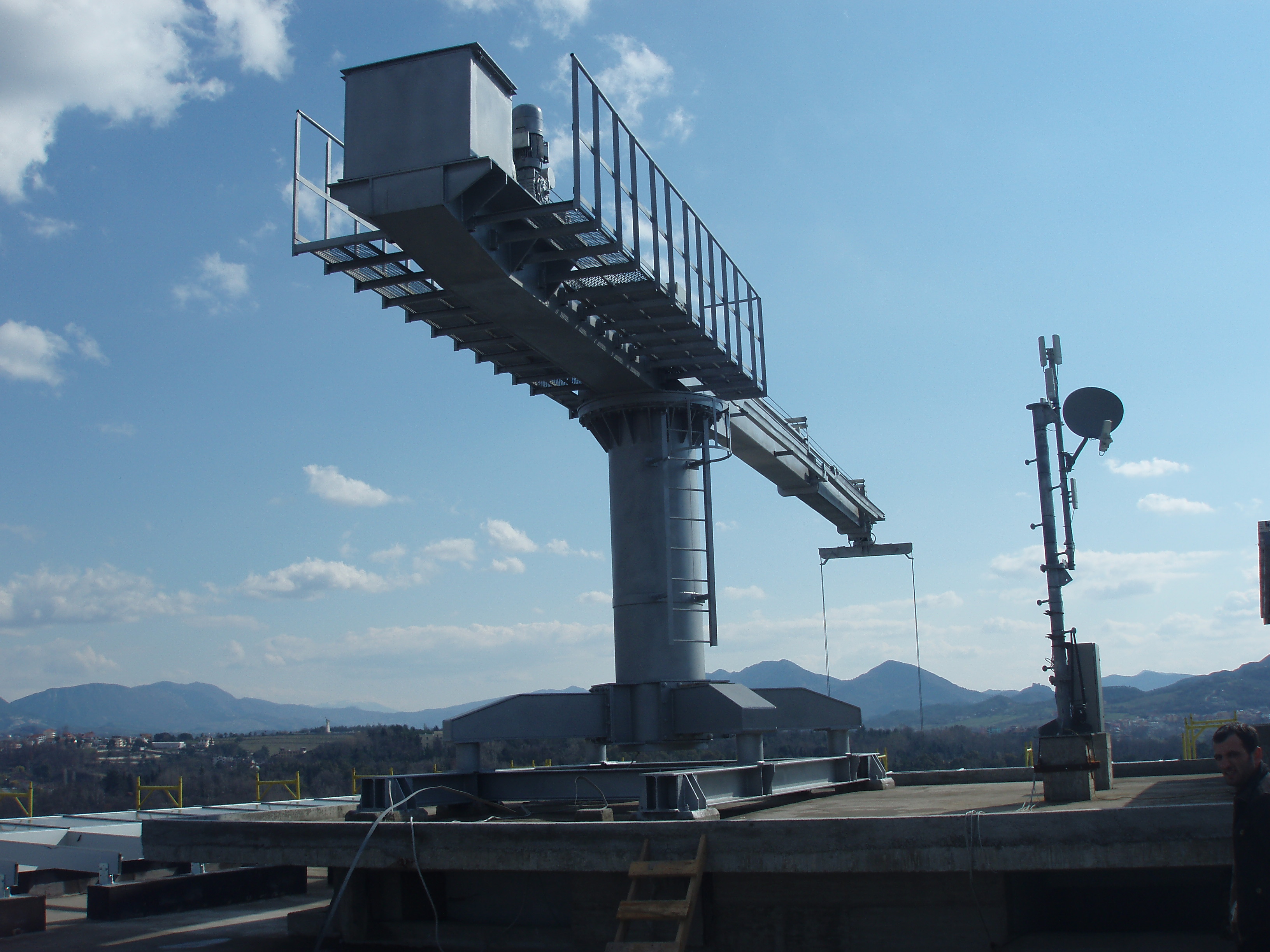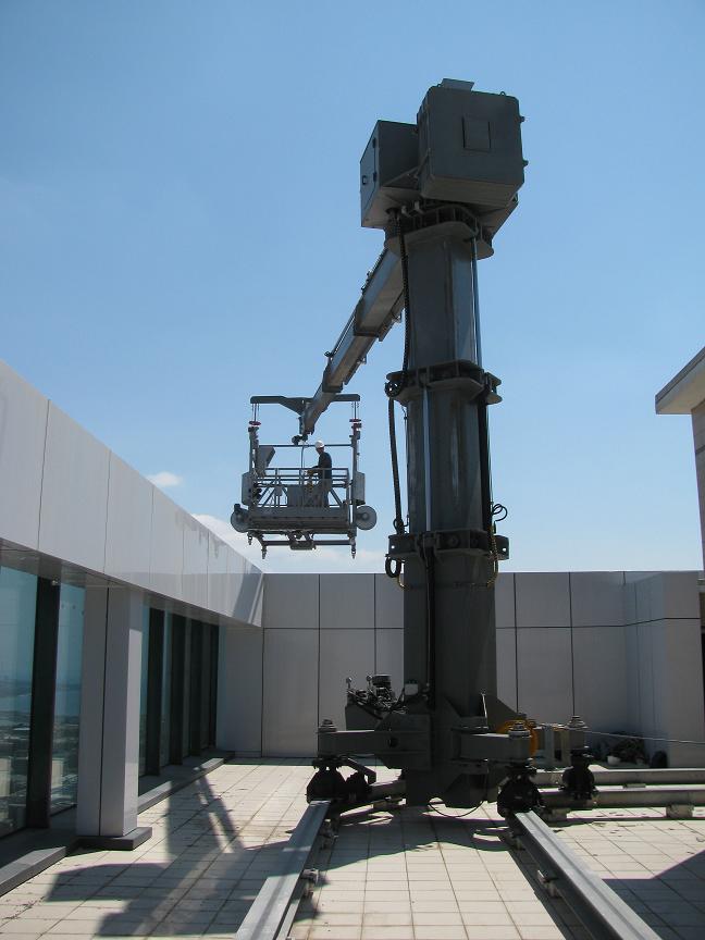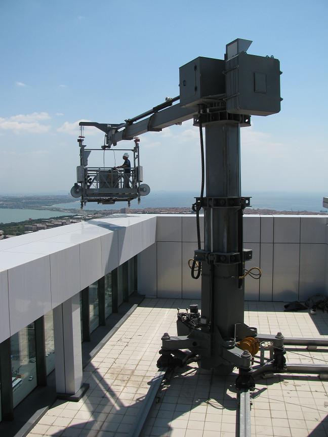 Designed for reaching every part of a building with a dual rail system according to the ground plan, or facades with different elevations from a fixed point. Its features include lifting, movement in narrow spaces and reaching every single façade, and the system is able to raising or lowering its body according to parapet conditions or the layout of ventilation installations.