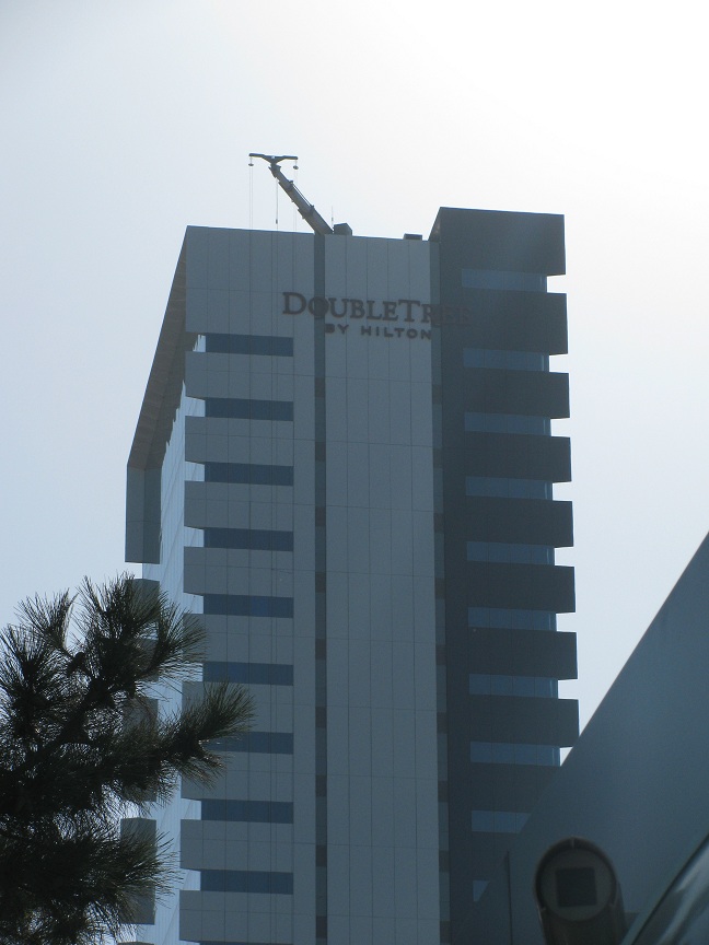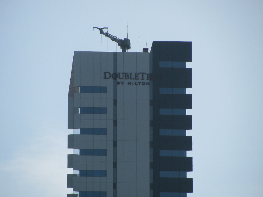 The platform is paralleled to the façade by the jib at the end of the boom, providing much faster and safer cleaning.